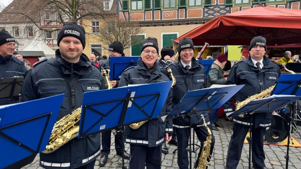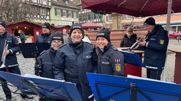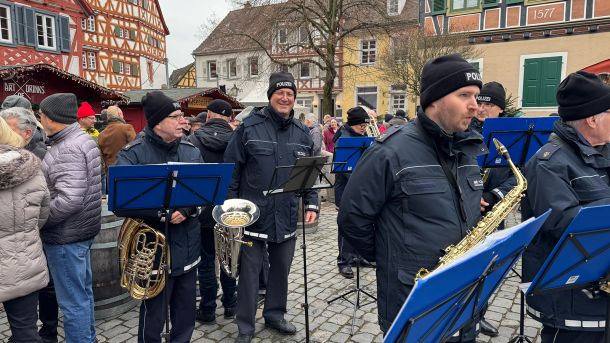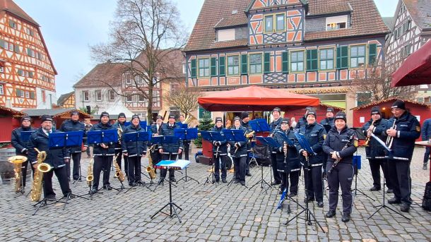 Bei trockenem Winterwetter und angenehmen rund 6 °C zeigte sich der Garango-Weihnachtsmarkt in Ladenburg am 3. Adventssonntag, dem 14. Dezember 2025, von seiner besten Seite. Zahlreiche Besucherinnen und Besucher fanden sich zum Frühs(c)hoppen auf den stimmungsvoll geschmückten Marktplatz und sorgten für eine rundum gute, vorweihnachtliche Atmosphäre. Das Polizeiorchester Mannheim sorgte von 11:00 bis 12:00 Uhr für festliche Klänge und erfreute Jung und Alt mit beliebten Weihnachtsmelodien.