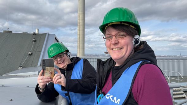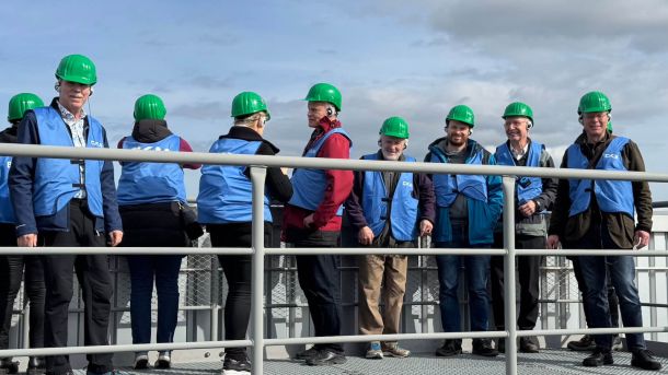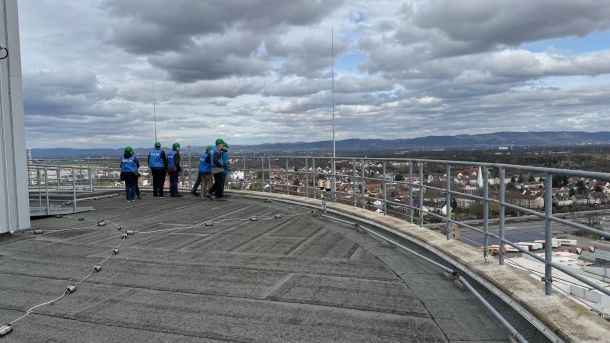 Heute war’s soweit: Ein Teil der Musiker des Polizeiorchesters Mannheim hat das Großkraftwerk Mannheim (GKM) Block 9 besichtigt und von innen wie von oben erlebt. Ausgestattet mit grünem Schutzhelm, blauer Besucherweste und Kopfhörern (die Turbinenhalle ist laut!) ging’s los.