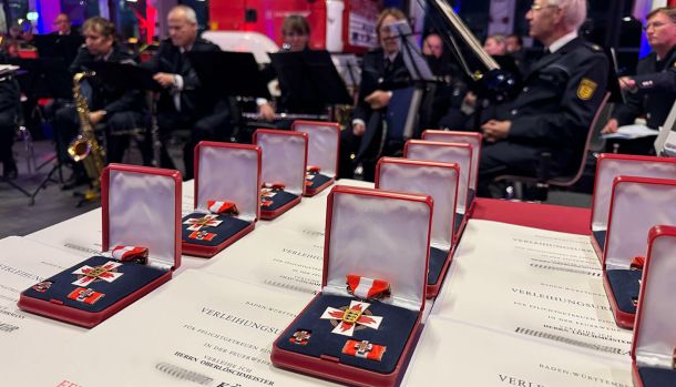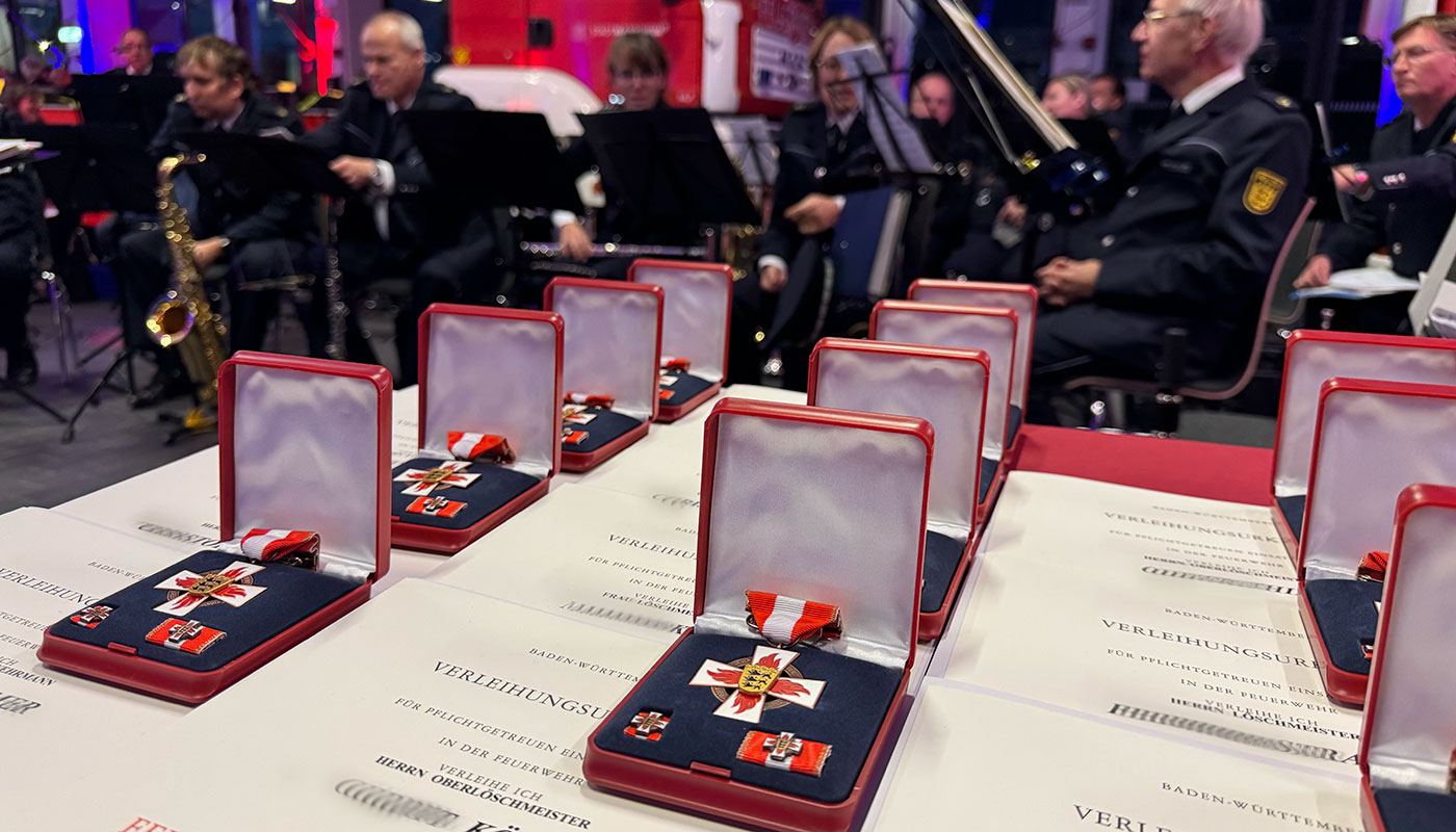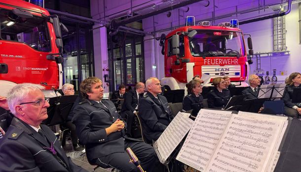 Das Polizeiorchester Mannheim umrahmte die Feierstunde musikalisch und setzte damit ein sicht- und hörbares Zeichen der Verbundenheit innerhalb der Blaulichtfamilie. Mit einem abwechslungsreichen Programm sorgten die Musikerinnen und Musiker für den feierlichen Rahmen, der den geehrten Feuerwehrangehörigen einen würdigen Tag bereitete.
