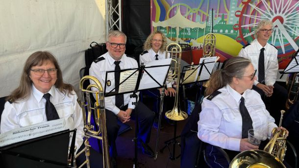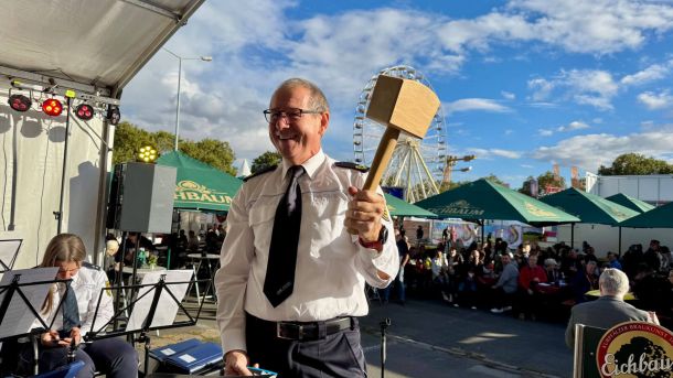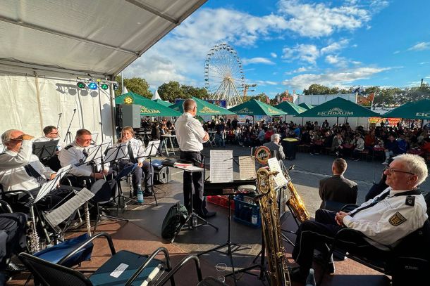 Das Polizeiorchester begleitete den Bieranstich traditionell mit "Ein Prosit" und den Krügen hoch. Zuvor ließ es sich das Orchester nicht nehmen, einem Geburtstagsjubiliar im Orchester ein Geburtstagsständchen zu spielen. Anschließend überzeugte das Orchester mit einer bunten Mischung von bekannten Titeln quer durch die Genres. Auch ein Paar Regentropfen konnte die gute Stimmung nicht trüben.