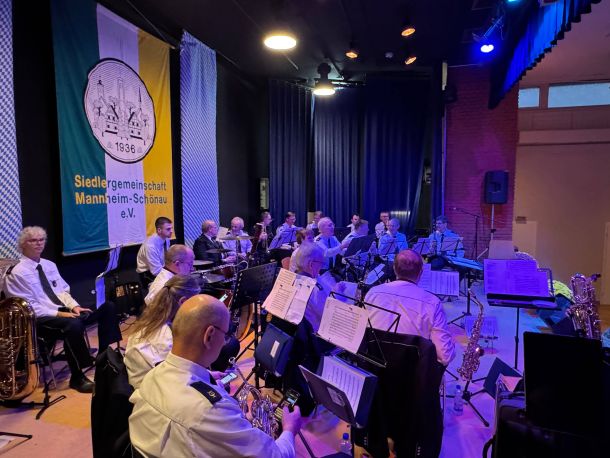 Die Siedlergemeinschaft Mannheim Schönau hatte am 19.10.2024 zum Oktoberfest geladen. Das Polizeiorchester Mannheim eröffnete mit dem „Deutschmeister Regimentsmarsch“, was das Publikum begeistert zum Mitklatschen animierte. Erste Zugabe-Rufe ließen ahnen, dass die Stimmungswelle nicht mehr abreißen würde.