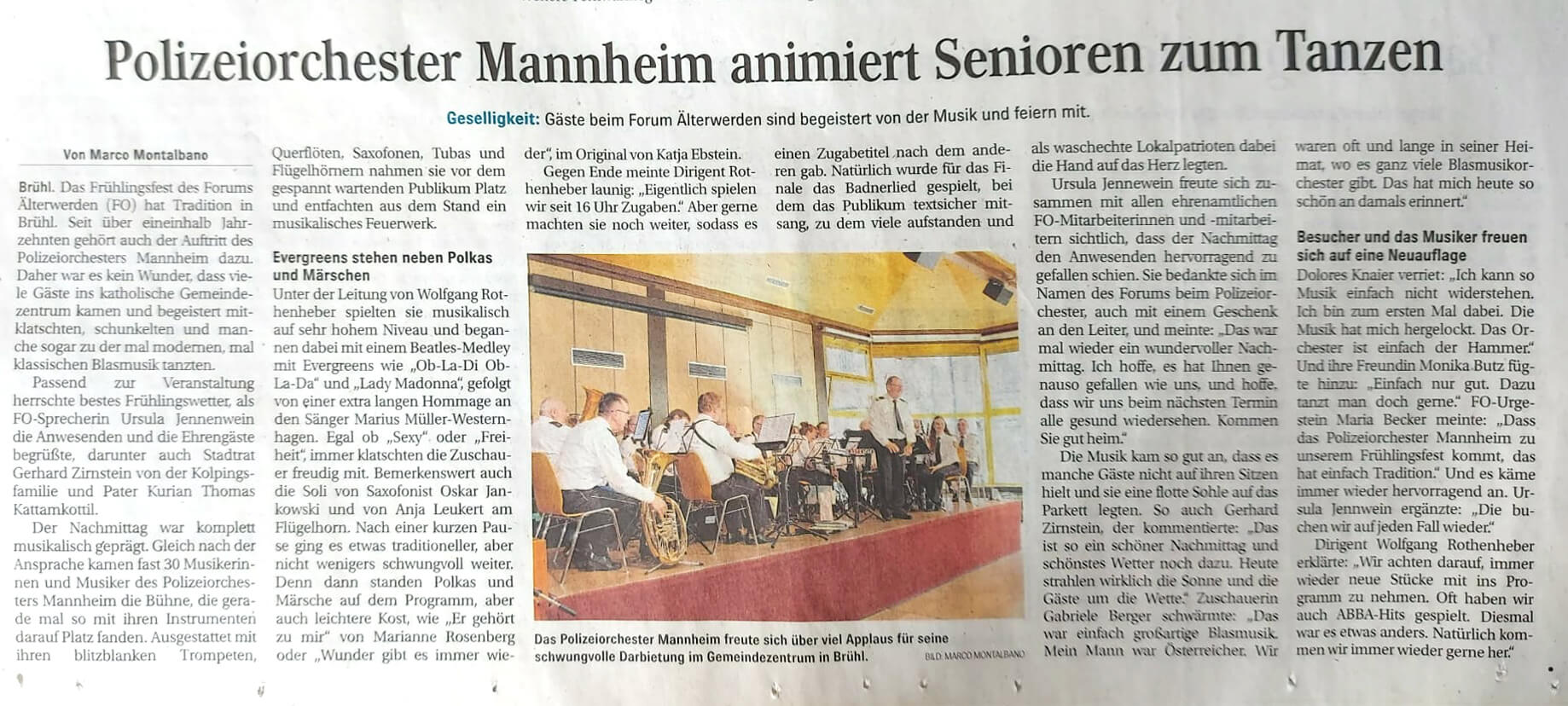 Brühl. Das Frühlingsfest des Forums Älterwerden (FO) hat Tradition in Brühl. Seit über eineinhalb Jahrzehnten gehört auch der Auftritt des Polizeiorchesters Mannheim dazu.