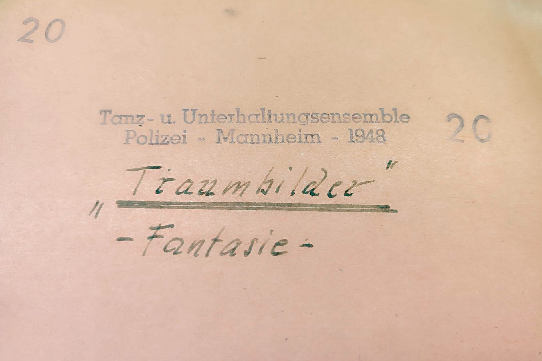 Stempel des Tanz- und Unterhaltungsensemble Polizei Mannheim von 1948 auf diversen Noten (Kellerfund).